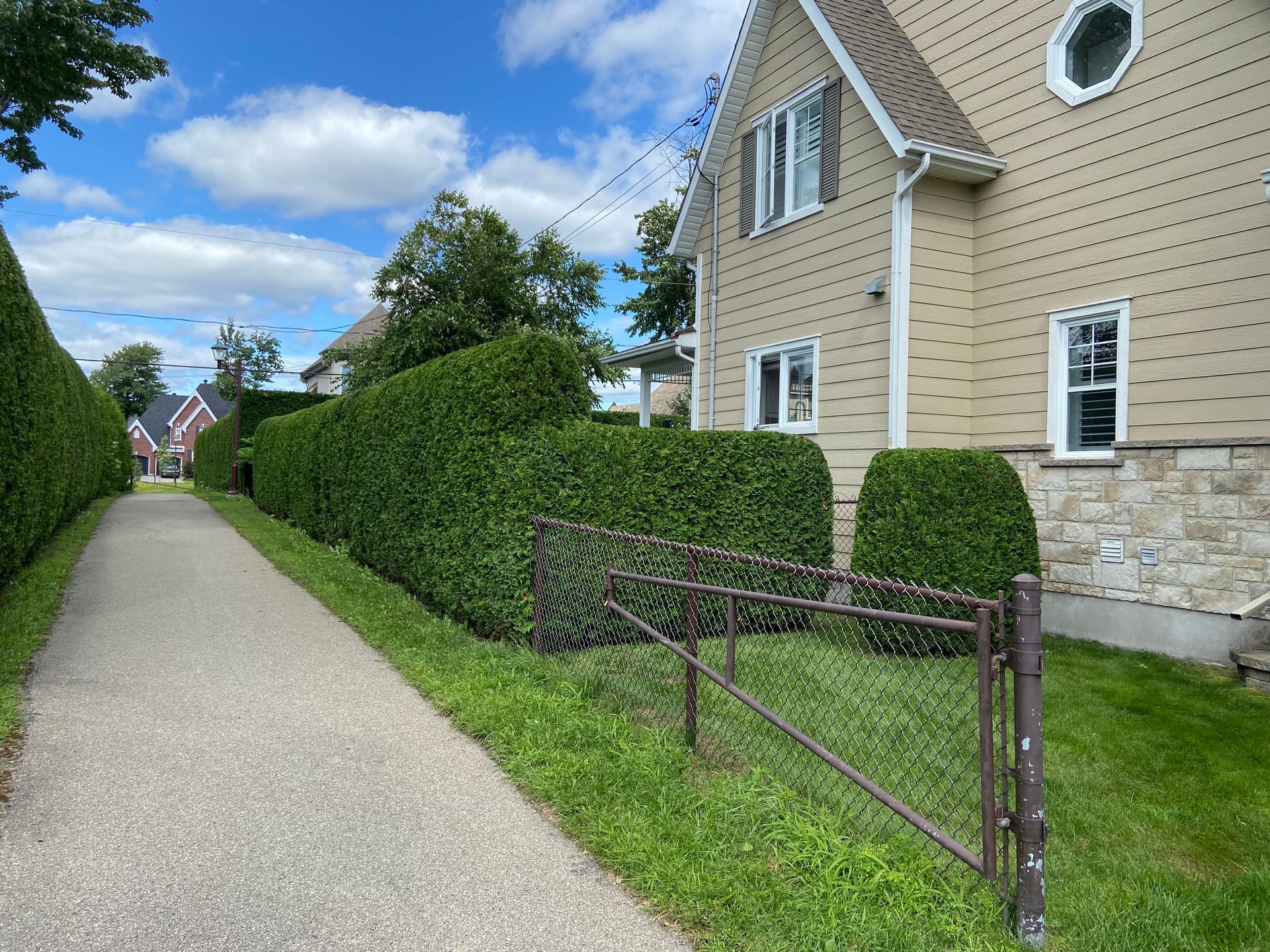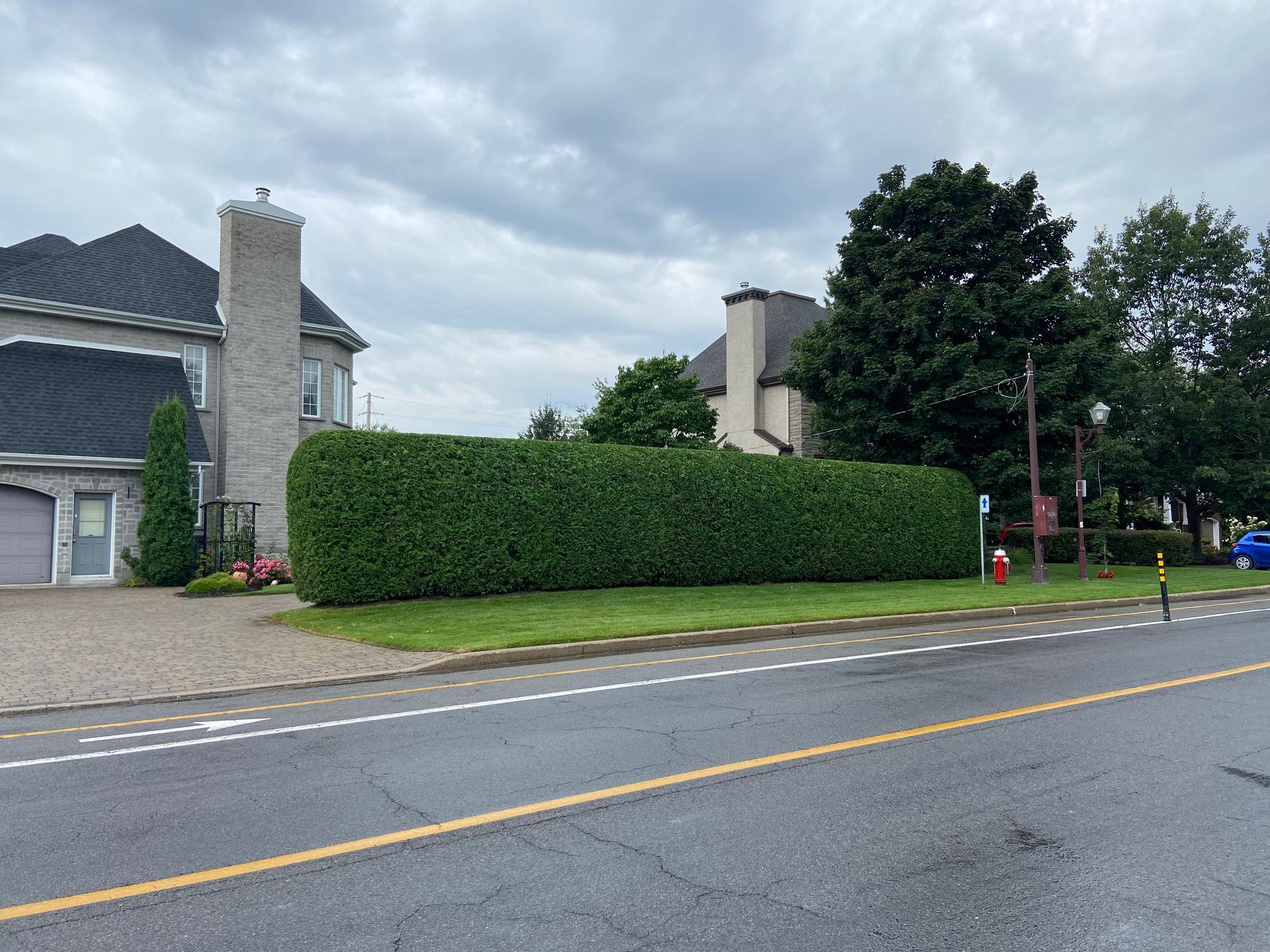 Explorez nos réalisations récentes en taille de haies à travers cette sélection de photos, incluant nos travaux dans des villes telles que Blainville, Bois-des-Filion, Lorraine, Terrebonne, et bien d'autres.